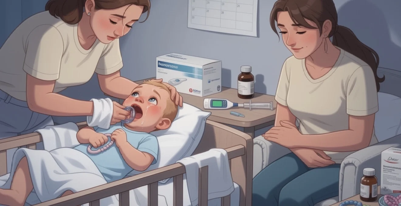 Lors d’une poussée dentaire, certains nourrissons présentent une légère élévation de la température, souvent comprise entre 37,5°C et 38°C. Cette fièvre modérée s’explique par l’inflammation locale des tissus gingivaux et par l’activation du système immunitaire face aux microtraumatismes de la gencive. Elle s’accompagne parfois d’un état général un peu « grognon » : bébé mange un peu moins, dort moins bien, mais reste réactif aux sollicitations et conserve des périodes d’éveil calmes.